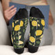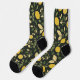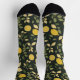 Los limones iluminados y las hojas patrón en un fondo verde oscuro.