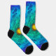 Una imagen fractal multicolor (azul, amarillo, verde) que se parece a mariposas o polillas que se dispersan desde un punto central.