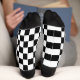 Obra de arte digital original en estos divertidos calcetines con un patrón retro vintage de tablero de ajedrez en blanco y negro. Estos calcetines locos juguetones se consideran un producto sostenible y se imprimen con tintas a base de agua. Acogedor y cómodo y hacer un gran regalo. Una talla realmente se adapta a todos.