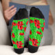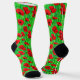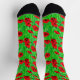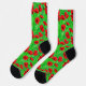 Calcetines en un patrón semiabstracto de acuarela de cachorros rojos en un campo, contra tallos y hojas verdes