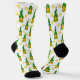 Divertido para el Día de San Patricio o en cualquier momento, estos calcetines de novedad tienen un patrón que contiene un pequeño gnomo gracioso con un gorra verde de shamrock. A su lado están las herraduras de oro.