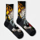Arte vectorial original de una mano sosteniendo cartas de juego que están en llamas. Con monedas de oro, dados, 8 bolas, Ribbon y un rosa.