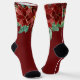 The socks feature a deep red background with beautifully arranged poinsettia blooms around the top of the socks.