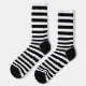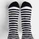 These socks feature stripe pattern in black and white.