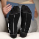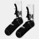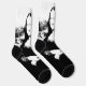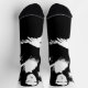 Un par de calcetines con un estilo de arte pop en blanco y negro de la obra maestra del artista italiano Leonardo da Vinci de 1504, Mona Lisa.