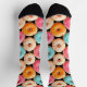 Calcetines personalizados graciosos y bonitos con un monograma con un patrón de donut colorido de color acuático sobre el fondo negro. Personalice fácilmente el monograma, escriba un nombre o déjelo en blanco. Kate Eden Art