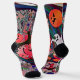 This vibrant artwork bursts with Halloween excitement, featuring a spooky yet playful array of jack-o'-lanterns and ghostly figures. The central figure, a ghoul draped in eerie fabric, stands amidst swirling, colorful patterns that add a dynamic, almost hypnotic, effect to the scene. Surrounding the ghost are various pumpkins with grinning faces, stacked creatively, contributing to the overall sense of fun and festivity. This lively, surreal design would make a perfect fit for Halloween-themed products, infusing any item with an imaginative, festive spirit.