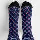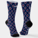 Awesome contemporary socks for the 4th of July 250th Semiquincentennial celebration. A pattern of small red stars inside outlined white stars on a navy blue sock. White name outlined in navy blue is on the front. True One Size Fits All (Size 5 Female to Size 11 Male). See 'About' for more information and care.