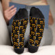 Estos calcetines de Halloween presentan un patrón de cara de calabaza tallada en un fondo negro de personalizable.