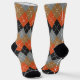 Argyle es tendencia. Naranja Gris Ligero De Negro Argyle con cosido blanco. El patrón de argyle ha sido reconocido desde hace mucho como un diseño clásico que ha resistido la prueba del tiempo. El patrón repetido en forma de diamante evoca una sensación de sofisticación y elegancia, añadiendo un toque de refinamiento a la ropa y los accesorios. El Abuelo ecléctico y el Renacimiento del Jazz son ambos trending topic y el estilo de arte encaja perfectamente en esa tendencia de moda.