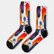 Celebra las vacaciones con estos calcetines de Navidades brillantes con un diseño de starburst rojo, azul y dorado sobre un fondo blanco. Perfecto para difundir alegría de temporada, estos calcetines combinan formas festivas abstractas con elegancia moderna, lo que los convierte en un accesorio o regalo de vacaciones ideal.