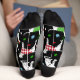 Perros de Navidades muy amables vestidos con ropa festiva. El dálmata con abrigos blancos y negros lleva sombreros de Santa, corderos, suéteres en un fondo vacacional con ornamentos dispersos.