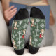 Sumérjase en el espíritu de las vacaciones con estos calcetines festivos con una encantadora acuarela Chihuahua en un sombrero de Santa, rodeado de delicados copos de nieve en un rico fondo verde. Estos calcetines son perfectos para los amantes de los perros que quieran añadir un toque divertido a su armario de invierno. Ideal como regalo personal, estos calcetines te aportan calidez, alegría y un poco de magia de vacaciones. Celebra la temporada con estilo y muestra tu amor por tu adorable Chihuahua con cada paso! Feliz Diseño de Ann.