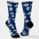 Calcetines de Navidades de animales divertidos con tiburones adorables, sonrientes, en sombreros de Santa que llevan bolas de disco en un patrón repetido en un fondo azul oscuro. Disco Ball Shark Santa Hat Navidades Socks Holiday Design | ©Melissa Patton - Artista/Ilustrador