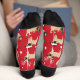 Patrón de navidades, Perros de pug con atuendos festivos con fondo rojo.