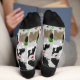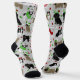Perros chiitas Navidades con colores negros, blancos, grises, dorados y máscaras, vestidos con trajes festivos, sombreros de Papá Noel y sudaderas de estilo argyle con adornos navideños dispersos.
