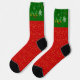 Fabulosos Navidades calcetines con copos de nieve en rojo con el texto "Ho Ho Ho Ho" de Santa sobre la franja verde. Calcetines de moda invernal para Navidades fiesta, Santa Secreta y esa época especial del año.