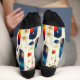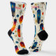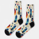 En el espíritu de las vacaciones, los modernos calcetines de Navidades estelares muestran una vibrante mezcla de acentos azules y rojos, starburst doradas y formas alargadas abstractas sobre un fondo crema festivo. Una combinación perfecta de diseño contemporáneo y encanto de vacaciones, ideal para regalos o estilo de temporada.