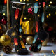 Celebre la temporada de vacaciones con estos elegantes calcetines negros con brillantes estallidos en vivos tonos rojos, azules y dorados. Perfecto para festividades de invierno o como un regalo de Navidad, estos calcetines le aportan un toque de elegancia celeste a su armario. ¡Brilla esta temporada!
