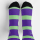 Calcetines de rayas moradas y verdes, nombre del personalizar y cambiar los colores de fondo
