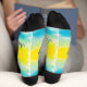 Calcetines con un fondo amarillo, azul y rosa. HAMbyWhiteGlove alias HAMbWG
