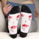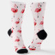 Navidades divertidos calcetines con un patrón de flamencos en trajes de Santa sobre un fondo rosa claro. Novedad divertida Flamingo Santa Animal Socks Diseño de vacaciones | ©Melissa Patton - Diseñador/Ilustrador