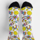 Barrio blanco dulce, Socks, patrón de pickleball estilo años 90 retro con bolas de picnic amarillas
