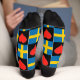 Calcetines patrióticos divertidos para los suecos orgullosos y para cualquiera que ame Suecia. Con un patrón único de cuadros con corazones rojos en cuadrados negros, y la bandera nacional de Suecia llenando los otros cuadrados. Esta es una gran manera de mostrar tu amor por Suecia y apoyo al pueblo sueco, equipos nacionales y cultura.