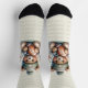 Las medias personalizados tienen un tema futbolístico con un toque femenino. Diseño moderno con flores y un oso lindo sosteniendo un fútbol. Fondo de color crudo. Personalizar el texto en los calcetines con el nombre o frase que desee. Genial para los aficionados al fútbol. Utilice la plantilla para crear sus propios calcetines personalizados.