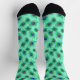 Calcetines en plumas de pavo real - azul turquesa / verde pavo real, con ojos rojizo y azul cobalto, sobre un fondo de agua pastel