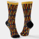 Ya sea que estés haciendo malabares o simplemente relajándote en casa. Te encantarán estos calcetines con estampado. Presentan un patrón de palos de malabarismo. Los ilustraciones de lápiz y tinta de estilo realista son rojos, amarillos, naranjas, verdes y azules y están colocados sobre un fondo azul marino.