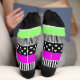 Parcelas de rayas negras, blancas y neonesas con tela crimson y verde