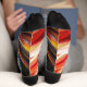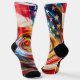 Vibrant abstract socks featuring a dynamic fusion of American and Chinese flag elements, painted in swirling red, blue, yellow, and white brushstrokes. A bold, artistic statement piece for cultural enthusiasts and lovers of expressive design.