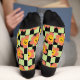 Diseño retro verde y negro con flores sonrientes. Ideal para los Fiestas y para la decoración en casa.