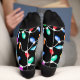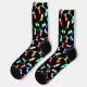 Navidades clásicos y multicolores con luces de cadena hacen un patrón festivo para la temporada de vacaciones! Estas bombillas de colores están sobre una cuerda blanca que se torna ligeramente y gira para un aspecto caprichoso. ¡El diseño aparece en un color de fondo negro! Puede cambiar el tamaño del patrón y elegir su propio color de fondo en estos calcetines personalizados, premium y sostenibles. ¡Añada luces brillantes y divertidas a su celebración de vacaciones de este año!