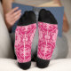 Calcetines en un patrón de mandala abstracta y geométrica de 4 vías en tonos suaves de fucsia y rosa pastel