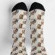 Si te encantan los perros de Yorkshire Terrier, ¡son calcetines para ti! Dos pequeñas imágenes de Yorkie diferentes, una de pie y otra sentada, alternan en el patrón, que se coloca sobre un fondo de color crema pálido.