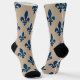 Calcetines Patrón Fleur de Lis, azul francés real en crema