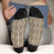 Estos calcetines tienen un esquema de color marrón y gris cálido para coordinarse con el conjunto. Un patrón simple de rectángulos y líneas que tiene un aspecto groovy de los años setenta. Este patrón tiene un fondo de color túpico con un diseño geométrico en crema, beige, marrón claro, marrón oscuro y verde oliva. Los gráficos geométricos tienen un aspecto estrafalario y angustioso que le da un aspecto vintage desgastado. Los colores neutros le dan un toque de los años 70.