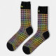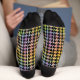 Cara de gallo arcoiris. Patrón sin foco. Color de fondo personalizado. Color de la franja superior del personalizado. texto personalizado en cada calcetín.