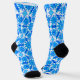 Calcetines con un patrón de mandala de doce puntos en tonos de cobalto y azul ceruleano con turquesa y agua, acentuados con blanco