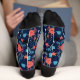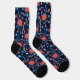 Patrón marino con cangrejos. Cangrejos naranjas, pez estrella, conchas azules y algas en un fondo azul oscuro.