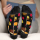 Estos calcetines de colores presentan un vibrante patrón de cosecha otoñal con calabazas, bayas, bellotas y castañas sobre un fondo negro (personalizable - clic en Editar diseño). ¡Genial para la temporada de otoño!