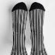 Estos calcetines de rayas blancas y negras tienen rayas verticales.