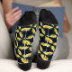 Una llamativa flor de margarita amarilla se acerca a un fondo verde oscuro. Fotografía de flores por Susan.