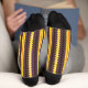 Estiloso calcetines a rayas con un vibrante patrón zigzag amarillo, naranja y marrón. Perfecto para añadir un ambiente retro a tu ropa. Diseño cómodo y de moda para todo el día.