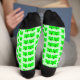 Este impresionante par de calcetines de tripulación con patrones presenta un personalizado de una mariposa alegre con un cuerpo verde oscuro y alas verdes fluorescentes. Sobre las alas está el texto verde oscuro que dice "Feliz San Pato". Esta simpática mariposa está diseñada para atraer a todas las edades y está lista y esperando desearle a alguien un feliz Día de San Patricio.