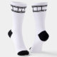 Calcetines de cine negros y blancos. Calcetines divertidos para cineastas, productores y fanáticos del cine. Calcetines blancos con rodillos de película alrededor del borde superior.