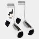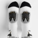 El personalizado original de Destei ilustracion de un perro de raza pastora alemán de dos colores negro. El perro se coloca en el área de diseño de la pantorrilla junto con un área de texto personalizable para un nombre u otro texto personalizado. En la parte delantera, en un color de fondo gris redondo, se coloca también un primer plano de la cara del perro. Los bordes del color de fondo gris se desvanecen en blanco. El color gris también se ve en la parte superior de los calcetines, con una franja blanca atravesándola. El color gris puede cambiarse a cualquier otro color, si así lo desea.