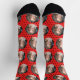 Puedes mostrar tu amor por tu amigo, esposo o pareja con estos alegres y acogedores calcetines impresos por personalizado. Este diseño presenta un patrón de tu foto favorita junto con pequeños puntos de polka negros sobre fondo rojo. Puede crear la propia imagen agregando la imagen a la imagen de marcador de posición redondeado. Será una idea de regalo personalizada y un obsequio de medias.